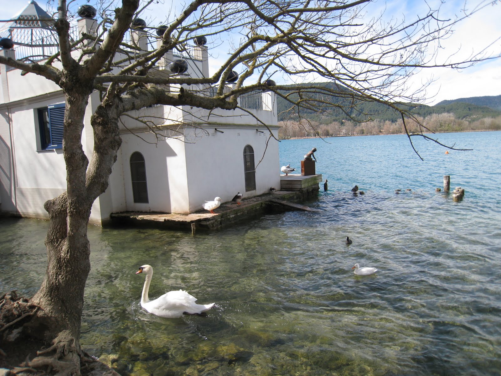 那個美麗的湖泊叫Estany de Banyoles而這個小鎮就是以此為名的(Banyoles)。湖泊很近步行十幾分鐘就到了,很大的一片湖,旁邊都是步道與住宅區,非常的寧靜,感謝老天賜予我們這麼好的天氣!陽光暖暖的曬在身上、清澈見底的湖水,悠遊自在的野鴨……翻遍旅遊書都找不到的小鎮,居然是我心目中最美麗的風景!